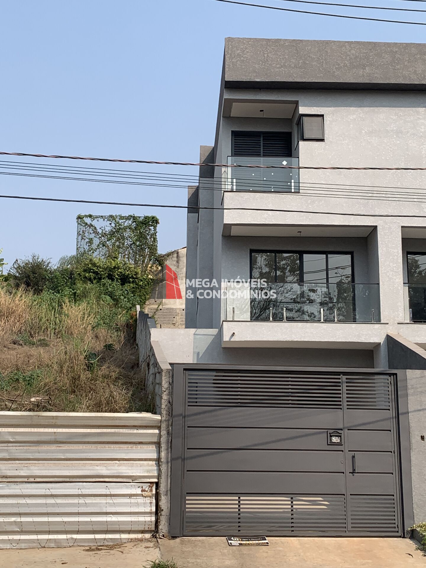 Garagem coberta para 4 veículos, com portão automático.